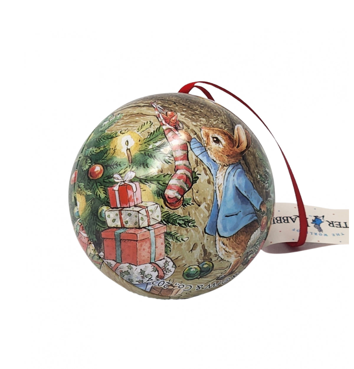 Who doesn't love Peter Rabbit?Keep miniature treasures and Christmas treats safe inside our Peter Rabbit bauble tins, perfect for hanging on your Christmas tree. Featuring Beatrix Potter's famous illustrations, these delightful baubles measure 7cm x 7cm. Wipe clean with a...