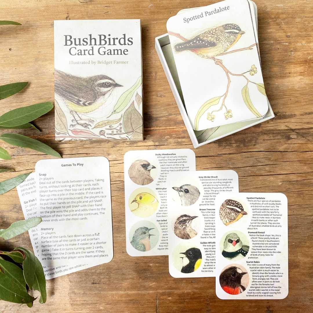 Have fun while learning the names of Australia’s favourite birds!Based on Bridget’s children’s book Kookaburra Kookaburra, this charming card game is packed with beautifully illustrated native birds. With 52 large-format cards featuring 12 iconic species – including the Kookaburra, Australian Magpie, Yellow Robin, New Holland...