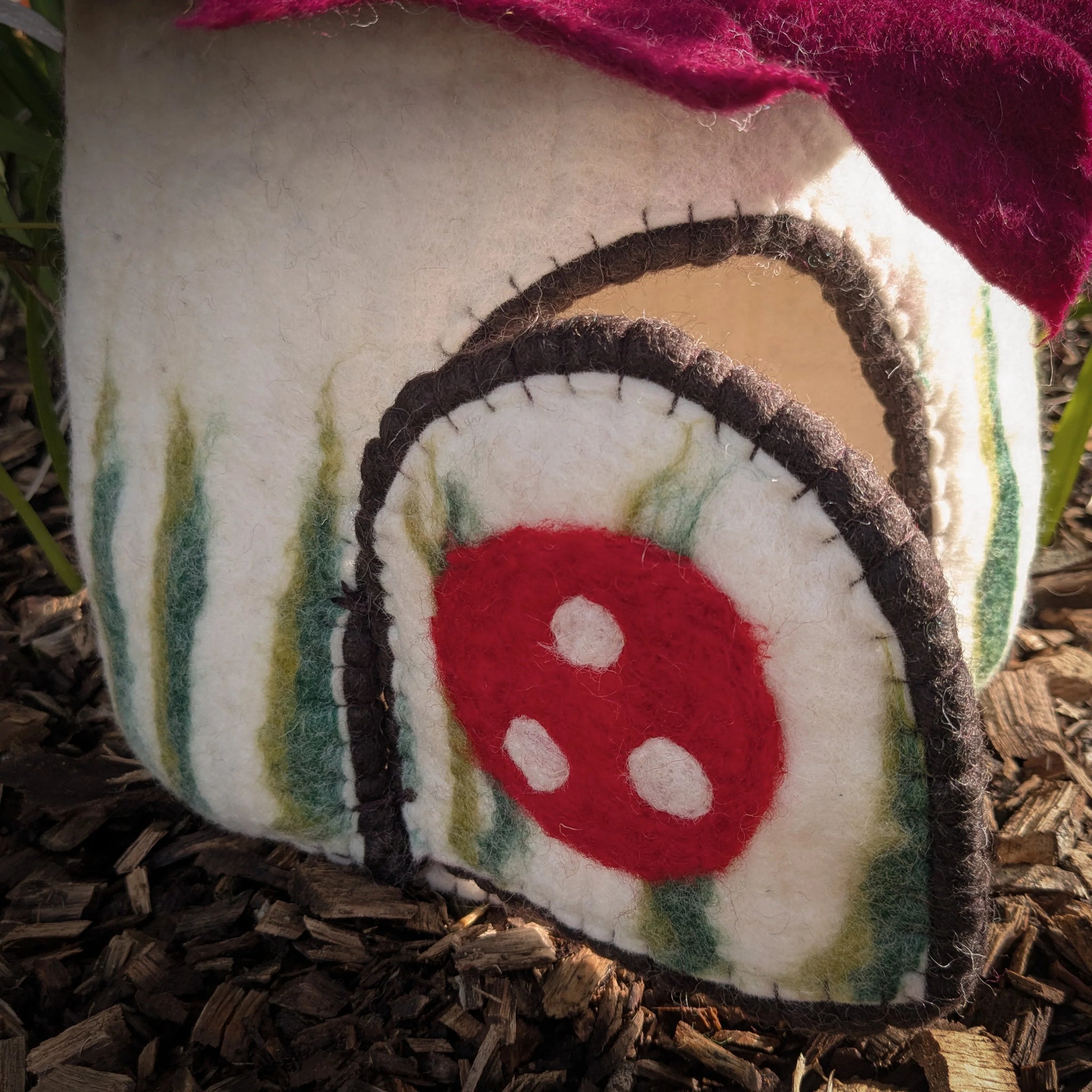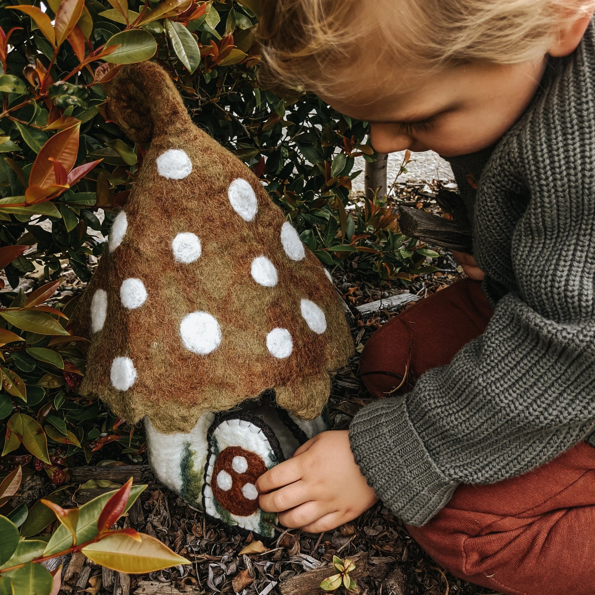 This beautiful extra large mushroom home has a maroon spotted roof and a small door (with a wire frame) which opens - the perfect place for elves, animals and fairy folk to play! A generous size, it is a beautiful...